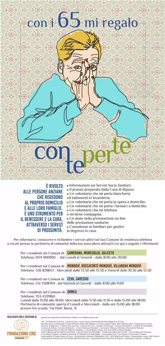 Il Progetto “Con Te Per Te”, realizzato con il sostegno della Fondazione Cassa di Risparmio di Cuneo nell’ambito del Bando Comunità 2030, intende promuovere il lavoro collaborativo, sinergico e innovativo con le comunità locali per rafforzare una rete articolata di servizi a sostegno della domiciliarità delle persone ultrasessantacinquenni.