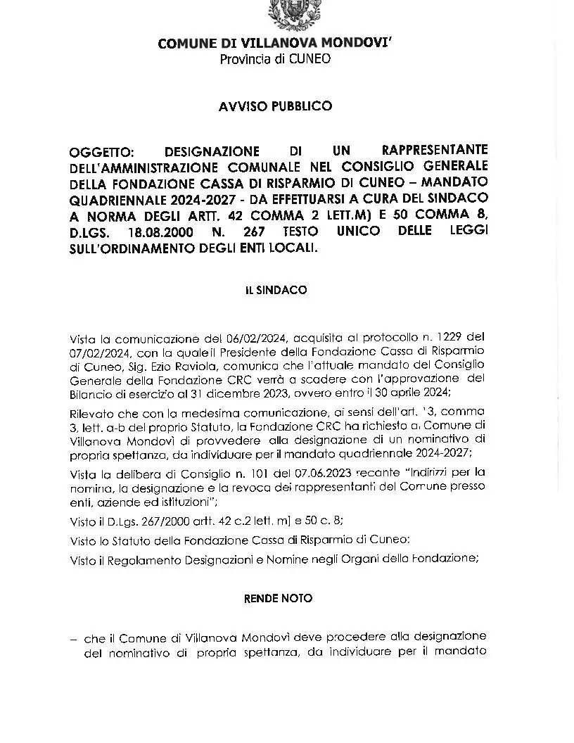 DI CUNEO – MANDATO QUADRIENNALE 2024-2027 - DA EFFETTUARSI A