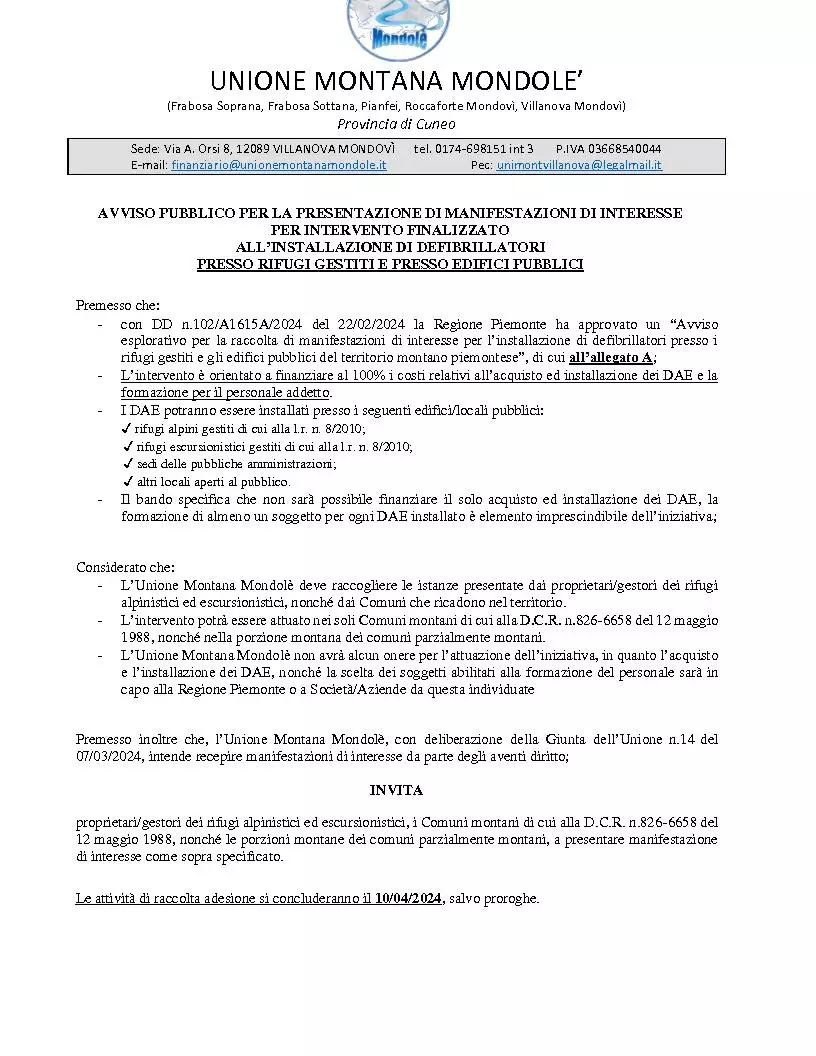 A cura di Questa pagina è gestita dal seguente ufficio AFFARI GENERALI INDIRIZZO: Via A. Orsi, 8 - 12089 Villanova Mondovì (CN) TELEFONO: 0174 698151 interno 8 EMAIL: segreteria@comune.villanova-mondovi.cn.it Persone Responsabile BARUCCO Chiara Personale BORGNA Marianna - BARUCCO Chiara