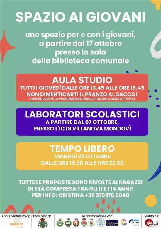 Ripartono le attivita' del progetto "spazio ai giovani"!