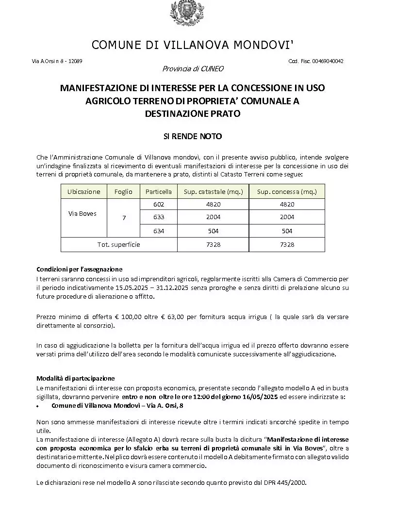 manifestazioni di interesse per la concessione in uso dei terreni di proprietà